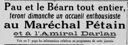 Pour permettre à tous les Jurançonnais d’aller entendre le Maréchal Pétain, la messe des hommes dite habituellement à 11 heures est supprimé ; outre les messes habituelles de 6h30 et de 9h30, une messe supplémentaire sera dite, à l’église paroissiale, à 8 heures , avant le rassemblement des anciens combattants qui doit se faire à la mairie.